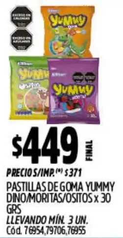 Supermercados Yaguar Yummy pastillas de goma dinomoritas/ositos oferta