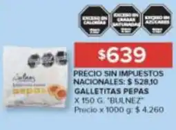 | BULNEZ Galletitas pepas 150 g | Carrefour | $ 859,00 | 05 marzo 2025 | 12 marzo 2025 | |||