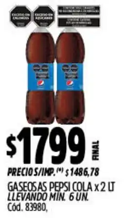 Diarco Pepsi gaseosa ofertaPepsi gaseosa 1,5 L Diarco$ 2.899,0024 noviembre 202528 noviembre 2025