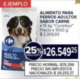 | ALIMENTO SECO PARA PERROS ADULTOS 15 kg | Carrefour | $ 39.634,00 | $ 27.743,80 | -30% | 04 septiembre 2024 | 10 septiembre 2024 | |