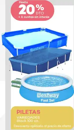 Esta semana hay 1 ofertas activas de Piletas. Usá los filtros para encontrar los mejores precios por producto o por ubicación. Guardá tu búsqueda y recibí alertas cuando aparezcan nuevas promociones de Piletas cerca tuyo.