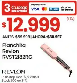 | Planchita revlon RVST 2182RG | Changomas | $ 69.999,00 | $ 45.297,00 | $ 24.702,00 Descuento | 03 octubre 2025 | 19 octubre 2025 | |