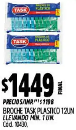 Durante estos días hay varias promociones activas para Plástico, tanto en Supermercados Yaguar como en otras cadenas importantes. Encontrás descuentos como 1+1 gratis, hasta 25% DTO o precios especiales en productos como Task broche plastico, Sanremo canasta plástico y Swift hamburguesa de carne. Usá los filtros para elegir por tipo de presentación, contenido o tu comercio preferido.