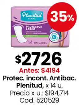 | Plenitud protector para incontinencia leve antibacterial paq. 14 u | Coto | $ 2.569,99 | 19 enero 2026 | 26 enero 2026 | |||