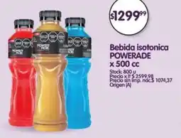 ![]() | Powerade isotónico 995 cc | Disco | $ 2.000,00 | $ 1.299,00 | $ 701,00 Descuento | 09 octubre 2025 | 12 octubre 2025 |