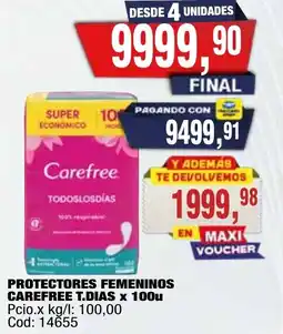 Durante estos días hay varias promociones activas para Protectores carefree, tanto en Supermayorista Vital como en otras cadenas importantes. Encontrás descuentos como 1+1 gratis, hasta 25% DTO o precios especiales en productos como Carefree protectores diarios, Carefree protectores femeninos t.dias y Hisense smart tv 70". Usá los filtros para elegir por tipo de presentación, contenido o tu comercio preferido.