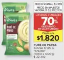 | Knorr Puré De Papa Bolsa x 125g | Carrefour | $ 69,50 | 23 julio 2021 | 26 julio 2021 | |||