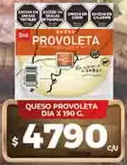 | Dia queso feteado provclone 150 g | Supermercados DIA | $ 4.490,00 | $ 3.990,00 | $ 500,00 Descuento | 01 febrero 2026 | 28 febrero 2026 | |