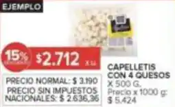 Carrefour Bulnez capelletis con 4 quesos ofertaBulnez capelletis con 4 quesos 500 g.Carrefour$ 2.150,00$ 1.828,00$ 322,00 Descuento21 octubre 202531 octubre 2025