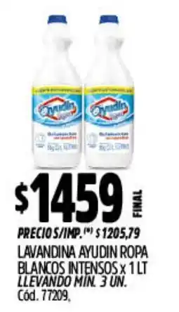 | 2 | Ayudín lavandina ropa blancos intensos 1 l | Supermercados Yaguar | $ 1.459,00 | 13 abril 2026 | 19 abril 2026 | Ver oferta | |||