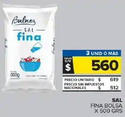 Carrefour Bulnez sal fina bolsa ofertaBulnez sal fina bolsa 500 g.Carrefour$ 999,0006 enero 202613 enero 2026