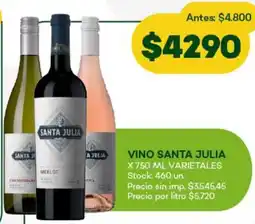 1Supermercados Tadicor Santa julia vino varietales ofertaSanta julia vino varietales 750 ml.Supermercados Tadicor$ 4.800,00$ 4.290,00$ 510,00 Descuento21 enero 202627 enero 2026 Ver oferta