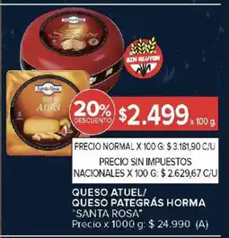 Carrefour Santa rosa queso atuel/ queso pate grás horma ofertaSanta rosa queso atuel/ queso pate grás hormaCarrefour$ 3.524,00$ 2.499,00$ 1.025,00 Descuento20 enero 202626 enero 2026
