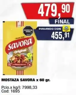 Supermayorista Vital Savora mostaza original sachet ofertaSavora mostaza original sachet 60 gSupermayorista Vital$ 499,0019 enero 202625 enero 2026