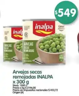 Supermercados Buenos Días Inalpa arvejas secas remojadas ofertaInalpa arvejas secas remojadas 300 gSupermercados Buenos Días$ 549,0023 abril 202629 abril 2026