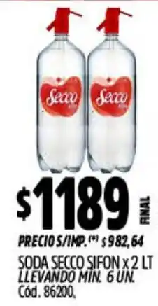 Supermercados Yaguar Secco gaseosas ofertaSecco gaseosas 2,25 lSupermercados Yaguar$ 899,0008 septiembre 202514 septiembre 2025