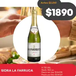 Sidra la farruca estará incluido en múltiples promociones a lo largo de la semana. Existen diferencias de precio entre distintos comercios, por lo tanto es útil comparar opciones. Productos similares también pueden encontrarse con precios especiales, lo que facilita encontrar la mejor alternativa antes de comprar.