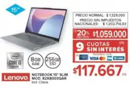 Carrefour Lenovo notebook slim 15° cis ofertaLenovo notebook slim 15° cisCarrefour$ 1.011.500,0026 agosto 202501 septiembre 2025