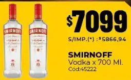 La Anonima Smirnoff vodka ofertaSmirnoff vodka 700 cc La Anonima$ 8.800,00$ 6.600,00$ 2.200,00 Descuento20 noviembre 202530 noviembre 2025