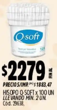 En esta página podés comparar los precios actuales de Soft en distintos comercios, como Carrefour. Ya sea que estés buscando Carrefour soft hisopos, Q-soft his opo o Q-soft hisopos pote, vas a ver de inmediato dónde se consigue al mejor precio. La oferta más económica aparece primero, con el nombre del comercio, el precio y el período de validez.