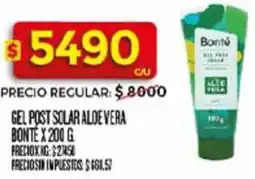 Supermercados DIA Bonté gel post solar aloe vera ofertaBonté gel post solar aloe vera 200 gSupermercados DIA$ 8.000,00$ 5.990,00$ 2.010,00 Descuento28 enero 202602 febrero 2026