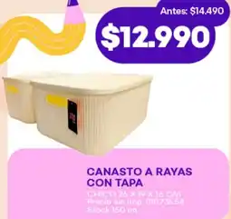 | Canasto a rayas con tapa mediano | Supermercados Tadicor | $ 19.990,00 | $ 16.990,00 | $ 3.000,00 Descuento | 11 febrero 2026 | 18 febrero 2026 | |