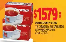 Encontrá fácilmente promociones relacionadas con Taragüi té en esta misma página. En la sección “Marcas relacionadas” o “Categorías” vas a ver productos y marcas similares que están en promoción. Así podés descubrir si existe una opción equivalente más económica en otro lugar o incluso en la misma cadena.
