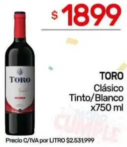 Supermercados Buenos Días Toro clásico vino blanco o tinto ofertaToro clásico vino blanco o tinto 1125 ccSupermercados Buenos Días$ 2.499,0005 marzo 202611 marzo 2026