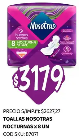 | Nosotras toallas femeninas buenas noches 16 u | Supermercados Tadicor | $ 6.740,00 | $ 5.099,00 | $ 1.641,00 Descuento | 11 febrero 2026 | 18 febrero 2026 | |