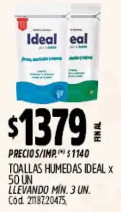 | 2 | Ideal toallas humedas 50 u | Supermercados Yaguar | $ 1.379,00 | 02 febrero 2026 | 08 febrero 2026 | Ver oferta | |||