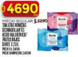 Bonté toallitas humedas desmaquillantes ácido hialuronico/ frutos rojos