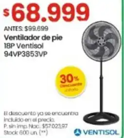 2Changomas Ventisol ventilador de pie 18p ofertaVentisol ventilador de pie 18pChangomas$ 99.699,00$ 68.999,00$ 30.700,00 Descuento22 enero 202627 enero 2026 Ver oferta