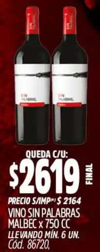2Supermercados Yaguar Sin palabras vino malbec ofertaSin palabras vino malbec 750 cc.Supermercados Yaguar$ 2.619,0026 enero 202601 febrero 2026 Ver oferta
