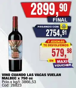 Maxiconsumo Cuando las vacas vuelan vino malbec ofertaCuando las vacas vuelan vino malbec 750 cc.Maxiconsumo$ 2.899,9002 marzo 202608 marzo 2026