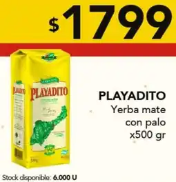 | Playadito yerba mate con palo 500 g. | Nini Mayorista | $ 1.799,00 | 02 febrero 2026 | 08 febrero 2026 | |||