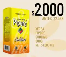 | Piporé yerba sublime 500 g. | Supermercados Todo | $ 2.568,00 | $ 2.000,00 | $ 568,00 Descuento | 07 abril 2026 | 20 abril 2026 | |