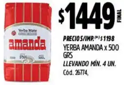 | Yerba Amanda Campo 500gr | Supermercados Yaguar | $ 329,99 | 09 enero 2023 | 14 enero 2023 | |||