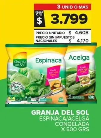 Granja del sol espinaca/acelga congelada en promoción en Carrefour Maxi