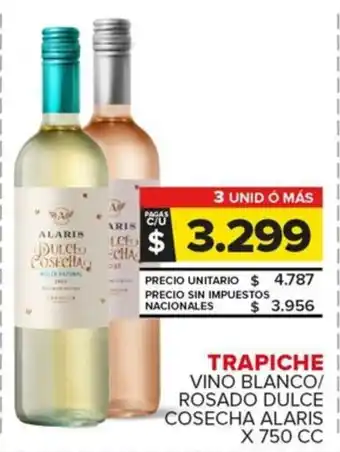 Trapiche vino blanco/ rosado dulce cosecha alaris en promoción en Carrefour Maxi