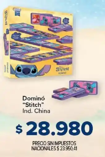 Esta oferta está disponible en varias tiendas y podés ver todos los productos para revisar dónde Stitch dominó está a menor precio. Si querés averiguar si este producto tiene un descuento mayor en alguna otra tienda, mirá la categoría 'Supermercados'. Estas otras ofertas también podrían llamarte la atención: Azucar domino, Stitch rompecabezas y Muñeco col stitch.