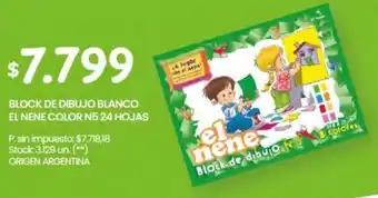 La promoción de Block de dibujo blanco el nene color n5. corresponde a la semana 05. Si ya no está vigente, podés consultar otras ofertas destacadas disponibles en este momento. Además, podés seguir la categoría del producto para recibir notificaciones cuand