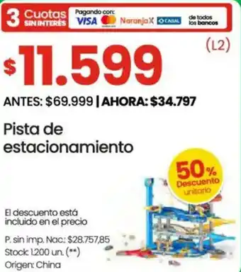 La promoción de Pista de estacionamiento corresponde a la semana 51. Si ya no está vigente, podés consultar otras ofertas destacadas disponibles en este momento. Además, podés seguir la categoría del producto para recibir notificaciones cuand