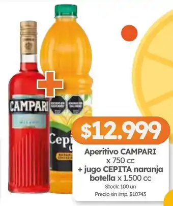 Campari aperitivo + Cepita jugo naranja en promoción en Cordiez