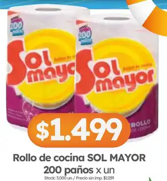 Esta oferta está disponible en varias tiendas y podés ver todos los productos para revisar dónde Sol mayor rollo de cocina está a menor precio. Si querés averiguar si este producto tiene un descuento mayor en alguna otra tienda, mirá la categoría 'Supermercados'. Estas otras ofertas también podrían llamarte la atención: Sol mayor rollo de cocina, Sol mayor rollo de cocina y Rollo de cocina sol mayor paq.
