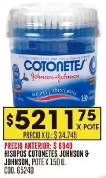 Oferta de Johnson & johnson hisopos cotonetes pote en Coto