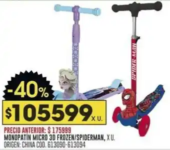 Ahora en oferta en Coto: Monopatin micro 3d frozen/spiderman ✅ Válido desde el 26-01 hasta el 2-02.