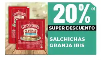 Esta oferta está disponible en varias tiendas y podés ver todos los productos para revisar dónde Granja iris salchichas está a menor precio. Si querés averiguar si este producto tiene un descuento mayor en alguna otra tienda, mirá la categoría 'Mayorista'. Estas otras ofertas también podrían llamarte la atención: Salchichas, Arvejas granja del sol y Panchín salchichas.
