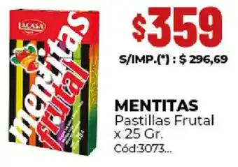 Descuentos previstos de Mentitas pastillas frutal