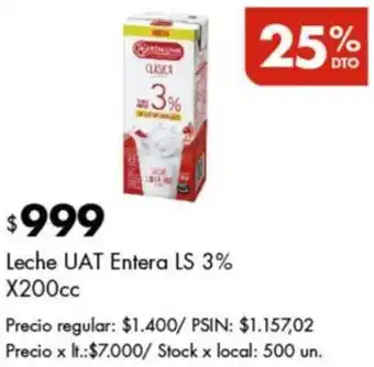 Ls leche uat entera 3% con descuento en Disco