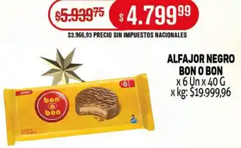 Bon o bon alfajor negro en promoción en Makro